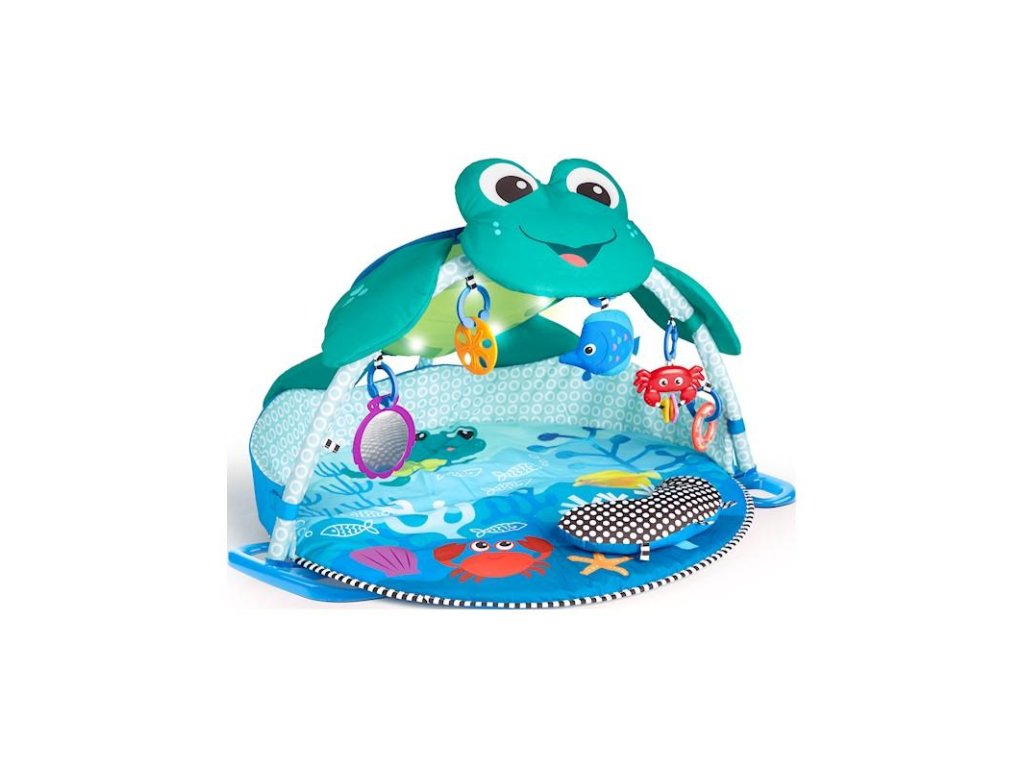 Vďaka tejto detskej deke so svetlami a melódiami čaká vaše dieťa objavovanie a hranie sa ako na morskom dne. Deka poskytuje viac ako 20 minút jemného osvetlenia s melódiami z celého sveta, ktoré dokážu zaujať aj tie najzvedavšie deti či už pri hraní sa na chrbátiku, brušku alebo v sede. Vrch deky vytvára 360 stupňový baldachýn posiaty žiariacimi svetlami a interaktívnymi závesnými hračkami, ktoré stimulujú zrak a rozvoj svalov na krku. Podporný vankúšik umožní vášmu dieťatku precvičiť si svaly na brušku a na textilné pútka vankúša môžete zavesiť rôzne hračky. Táto deka na hranie umožní bábätkám hranie sa v bezpečnom priestore a vy si môžete vychutnať chvíle s voľnými rukami a zároveň sledovať aké nové objavy robí váš drobček v podmorskom svete.