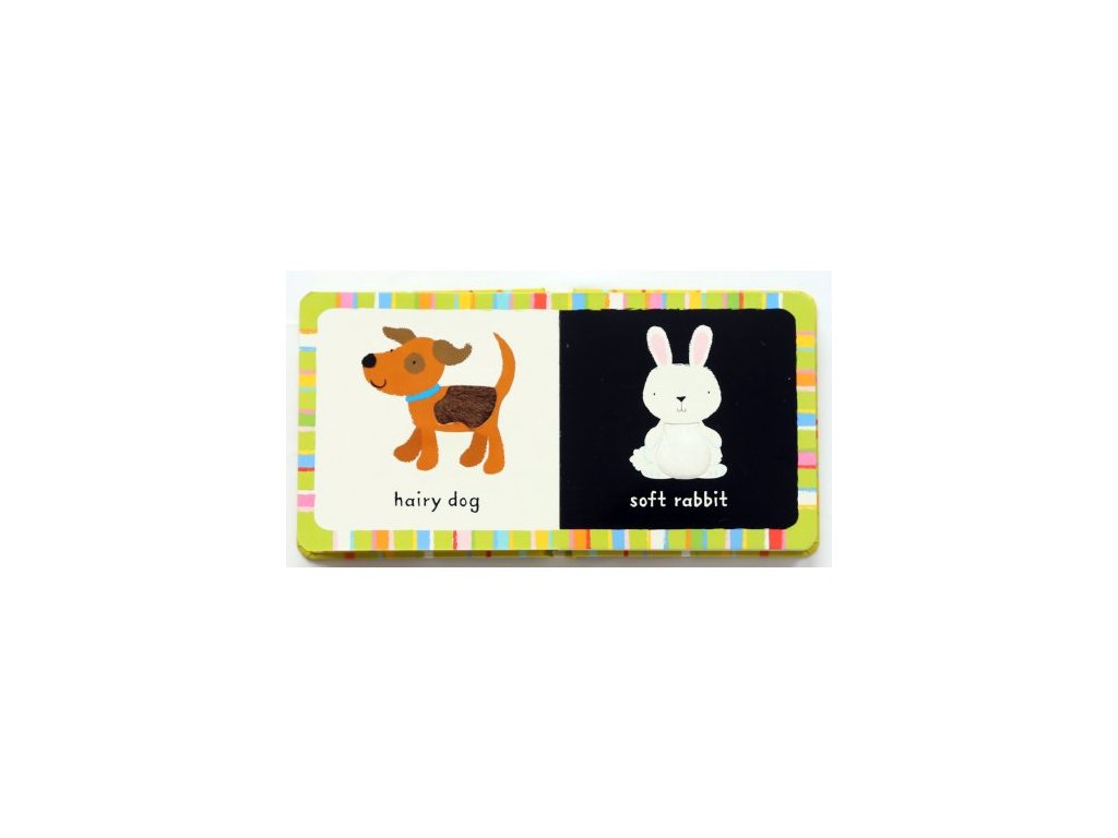 Ak hľadáte dotykové leporelo pre najmenšie deti, siahnite po knihe Baby´s very first touchy – feely Animals book. Ako už názov napovedá, hlavnú úlohu v nej zohrávajú najobľúbenejšie detské postavičky – zvieratká. Roztomilé ilustrácie Angličanky Stelly Baggot si bábätká ihneď obľúbia. Pripomínajú totižto detské kresby a každé jedno je namaľované len pomocou jednej výraznej farby, takže i najmenšie bábätko naň dokáže upriamiť svoj zrak. A to nie je všetko! Každé jedno v sebe ukrýva dotykovú plochu, ktorú malé detské pršteky budú chcieť hladkať znovu a znovu. Zistia, aká teplučká je ovčia vlna, pohladkajú hebký kožúšok zajačika aj lesklý povrch rybích šupiniek. Leporelo naučí deti rozpoznávať osem známych zvieracích kamarátov, pomôže im osvojiť si farby i prídavné mená typu mäkký, chlpatý, lesklý a pod. Text v leporele je v anglickom jazyku, takže deti sa nenásilnou formou naučia i základné anglické výrazy.