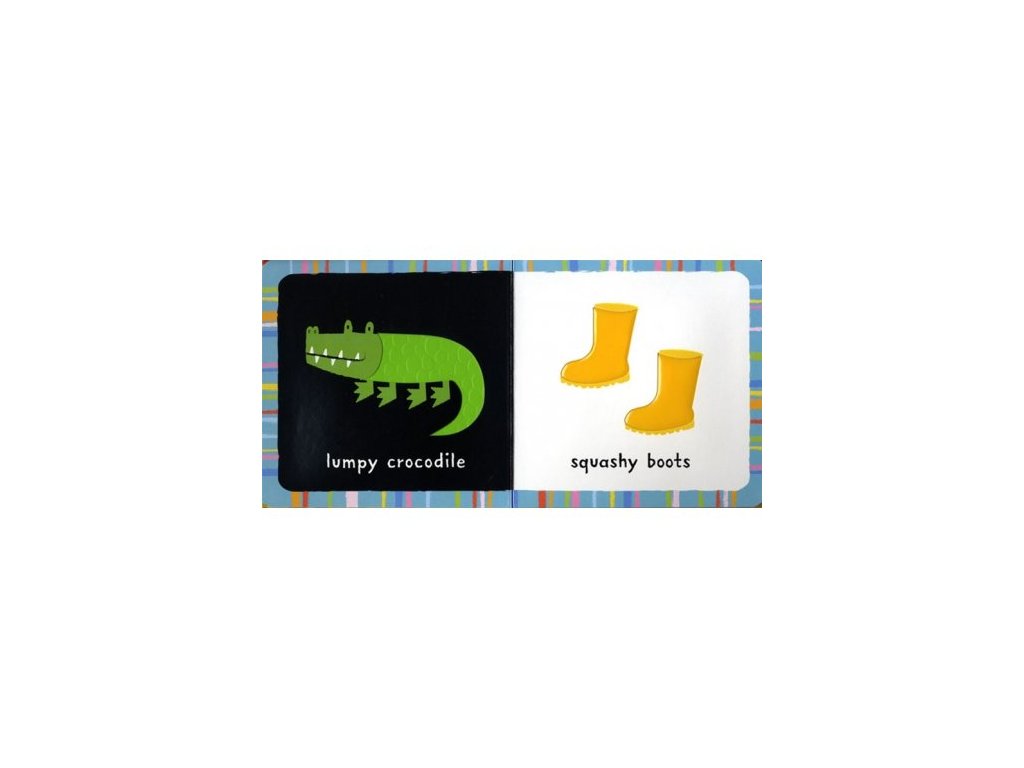 Leporelo s dotykovými plochami Baby's Very First Touchy-feely Book je ideálne ako prvá kniha. Obsahuje všetko, čo najmenší prieskumník potrebuje - čiernobiely podklad strán v kombinácii s kontrastnými farbami okamžite zaujme pozornosť bábätka a vďaka dotykovým plochám imitujúcim povrch predmotov, či zvieratiek, pozornosť aj udrží. Dieťatko je tak motivované sa ku knihe opakovane vracať.