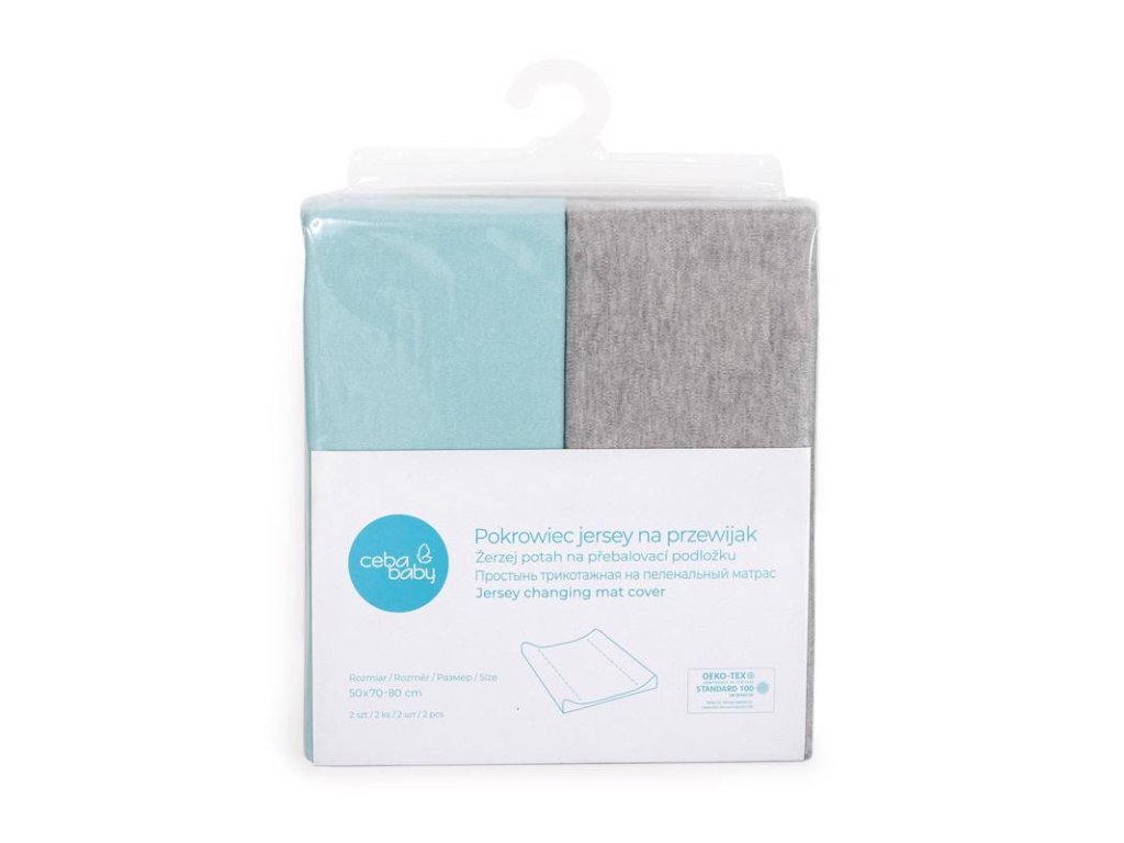 CEBA Poťah na prebaľovaciu podložku 50x70-80 cm 2 ks Light Grey Melange+Turquoise
