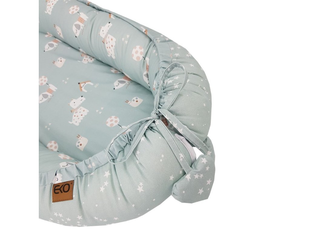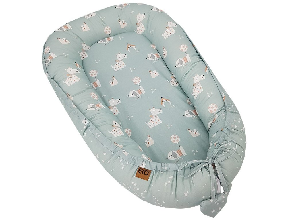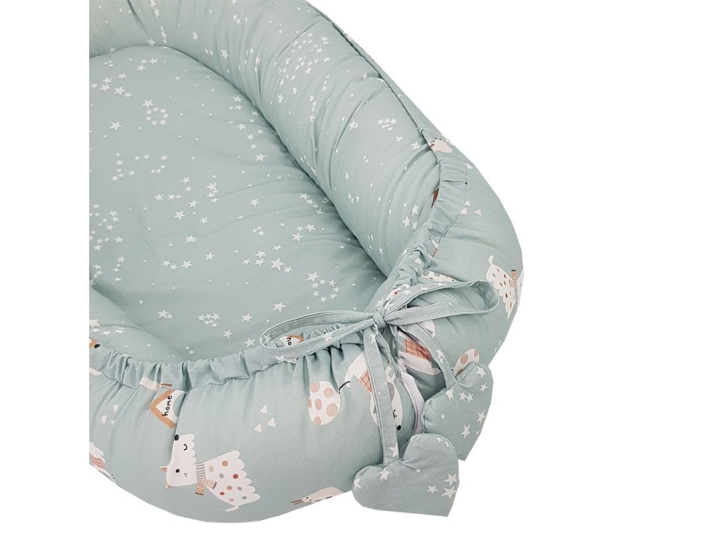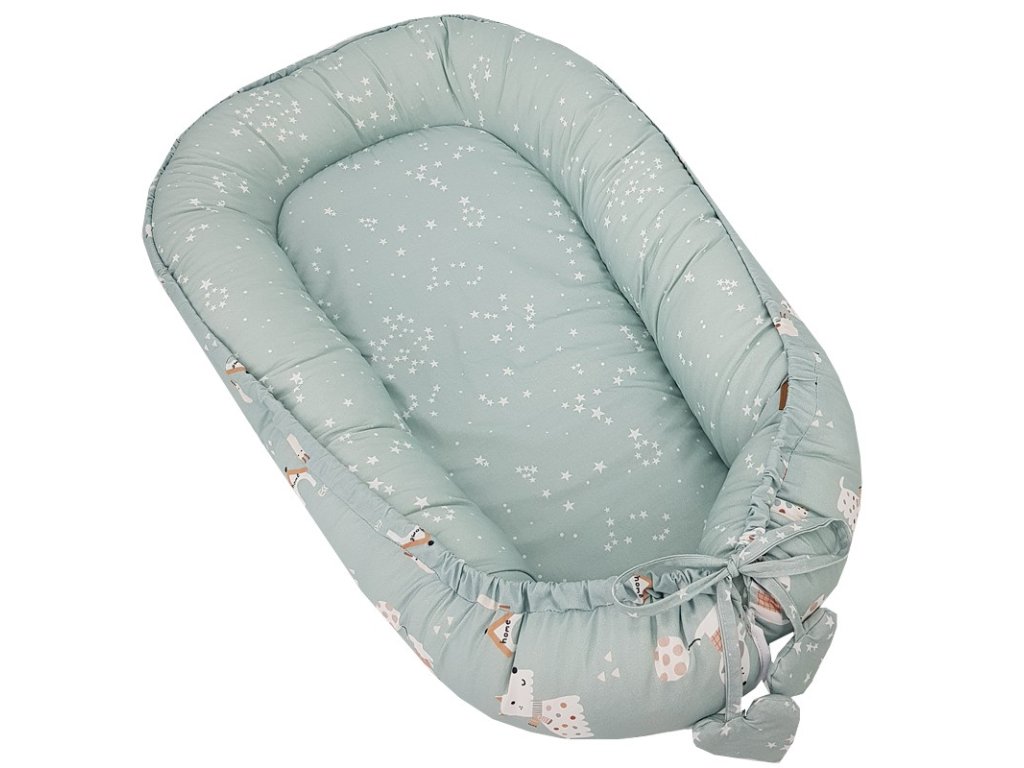 Multifunkčné hniezdo obojstranné pre dieťa s okúzľujúcim vzhľadom poskytuje bezpečnosť a pohodlie pre spiace deti. Skvelá alternatíva k tradičným perinkám a zavinovačkám. Praktickosť hniezda znamená, že môže byť použitý aj ako podložka na hranie. Hniezdo má vysoké okraje, ktoré uľahčujú položenie dieťaťa na boku, čo je dôležité najmä, keď dieťa má reflux.