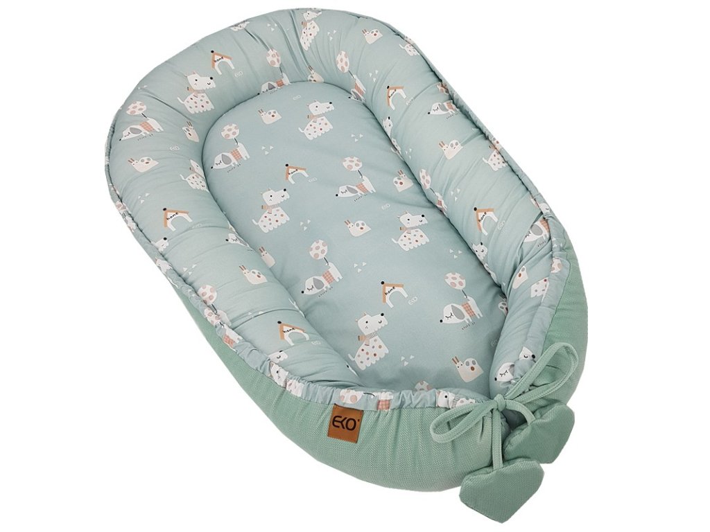 EKO Hniezdo pre bábätko VELVET Dogs Mint 90x60 cm