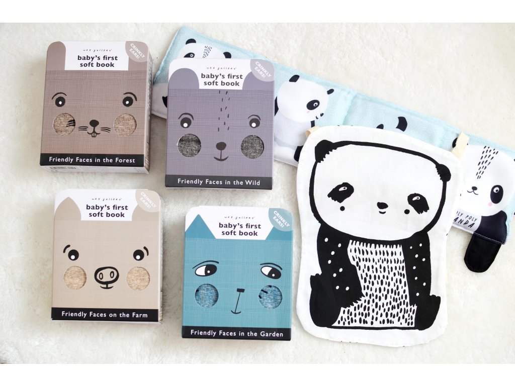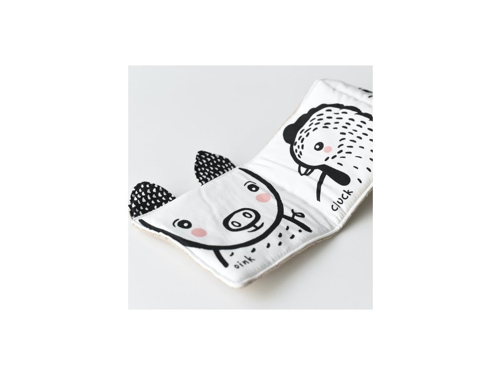 Látková kniha s kontrastnými čierno-bielymi obrázkami od Wee Gallery je stvorená na zoznámenie s knihou pre najmenšie bábätká.