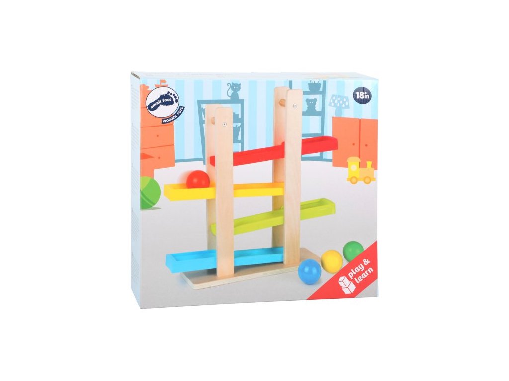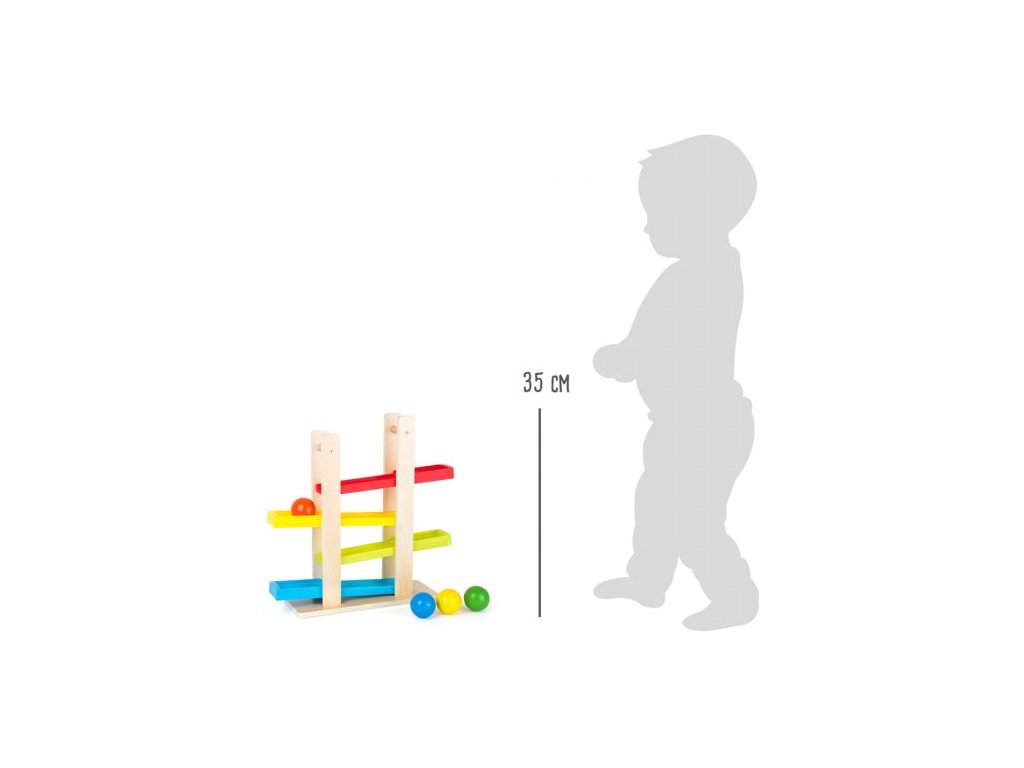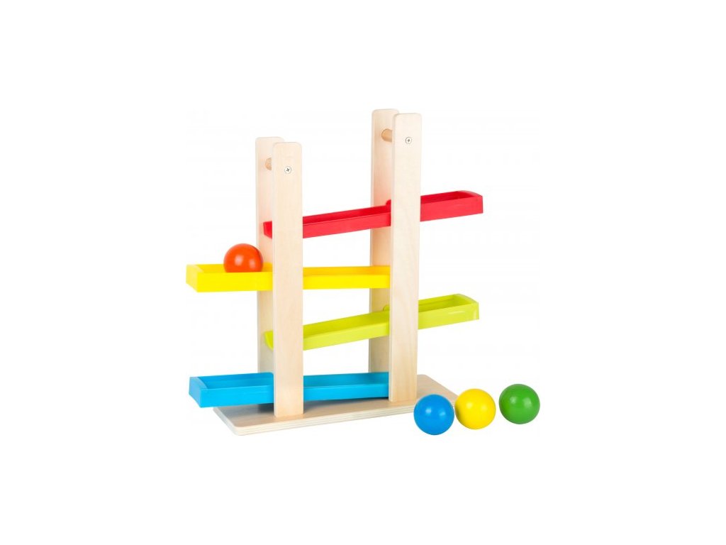 4 farebné guľôčky sa vždy dostanú dole. Dieťa si pri manipulácii s nimi cvičí jemnú motoriku a učia sa základné farby. Dráha je vyrobená s ohľadom na prírodu a bezpečnosť dieťaťa.