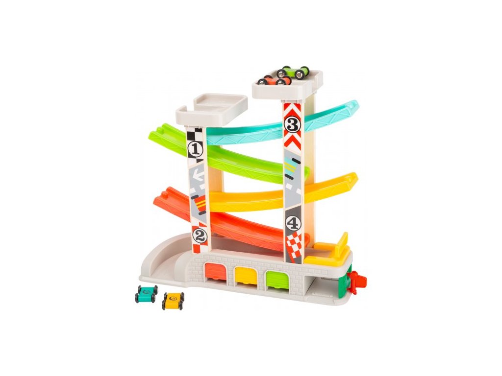 Z parkoviska môžu odštartovať naraz dve pretekárske autíčka po štvorposchodovej klip klap dráhe. Po pretekoch môžu byť autá zaparkované v garážach a pripravovať sa na ďalšiu jazdu! Autodráha pobaví všetkých malých fanúšikov automobilových závodov.