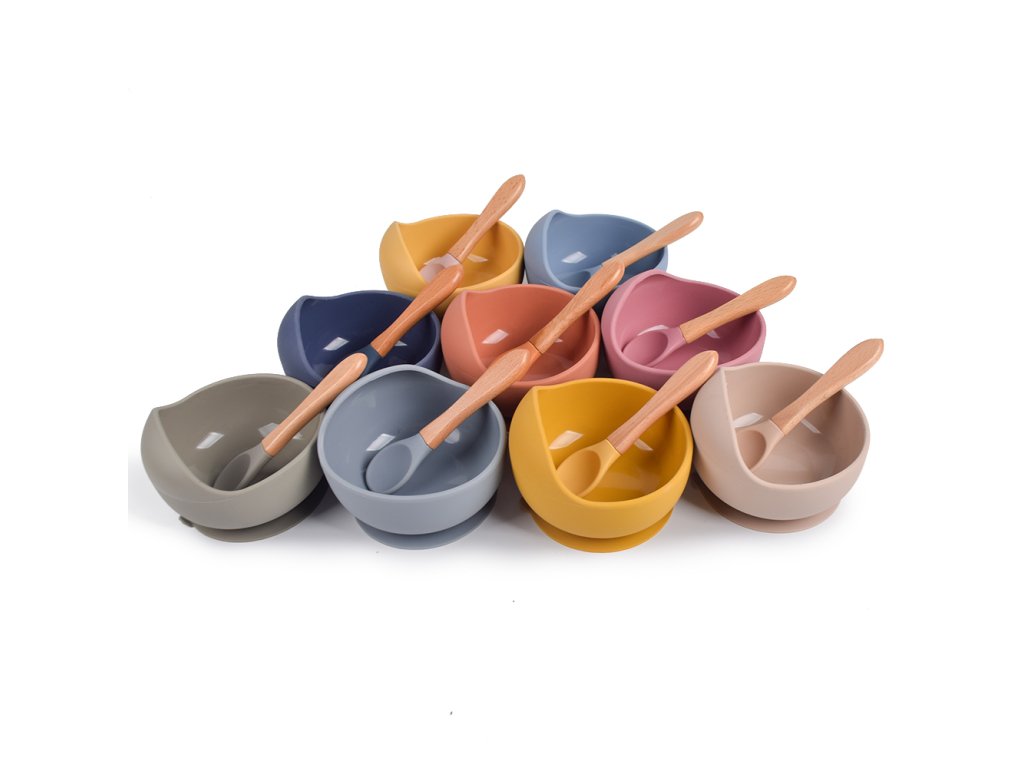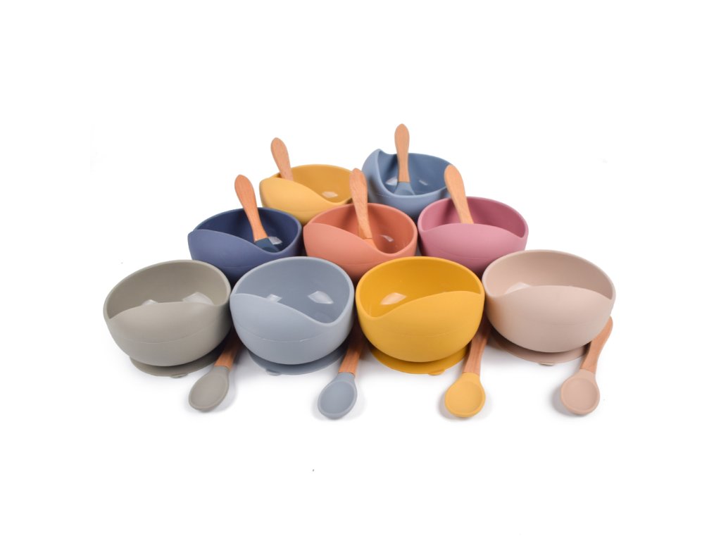 Martons SET - silikonová miska Classic s prísavkou + lyžička Dusty Blue