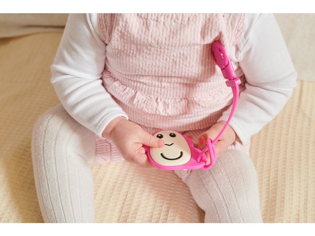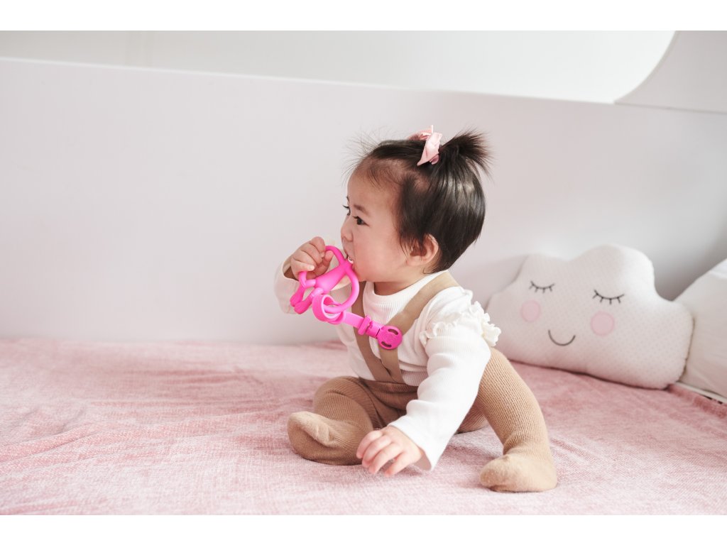 Hryzadlá alebo cumlíky majte na dosah a mimo podlahy. Jednoducho pripevnite klip na oblečenie a už nikdy nestratíte hryzátko.