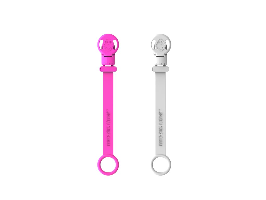 Matchstick Monkey klipy na cumlík - Pink & Cool Grey - 2ks