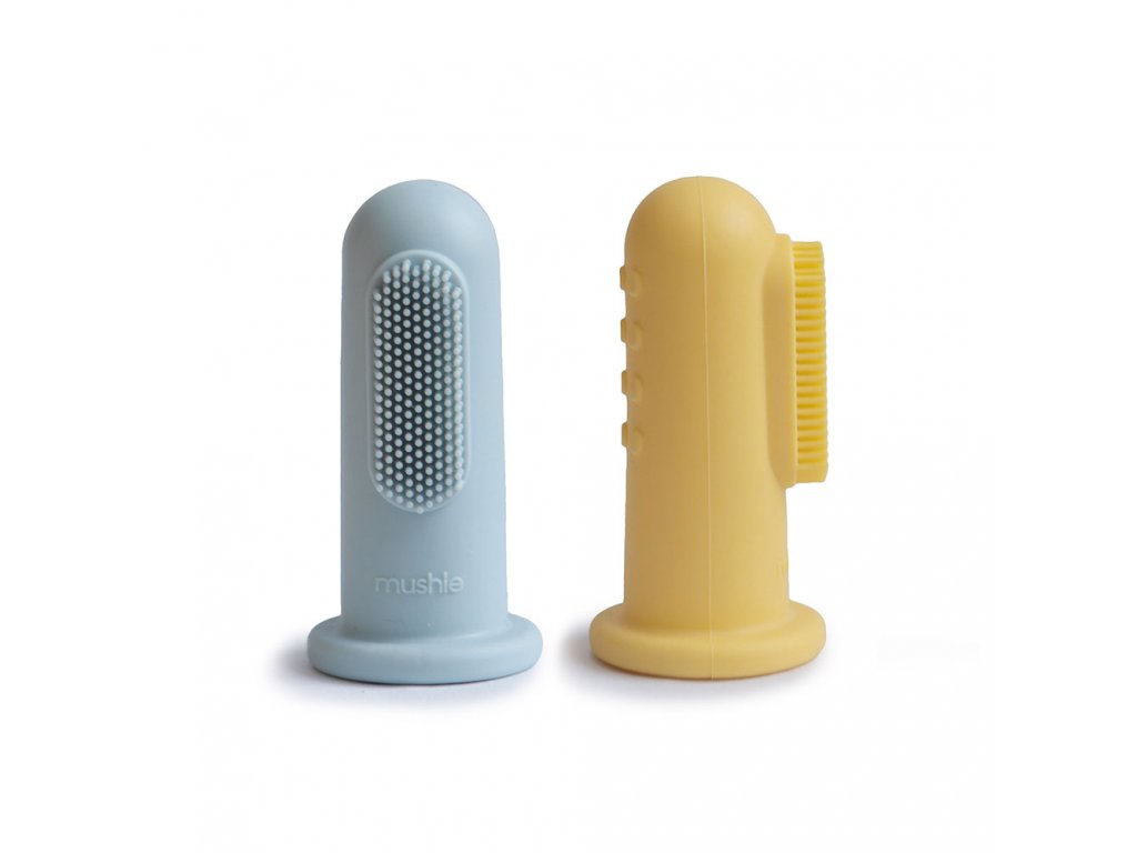 Mushie silikónová zubná kefka na prst 2ks - Powder Blue / Daffodil