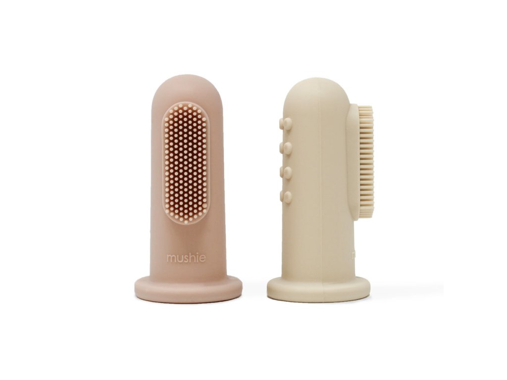 Mushie silikónová zubná kefka na prst 2ks - Shifting Sand / Blush