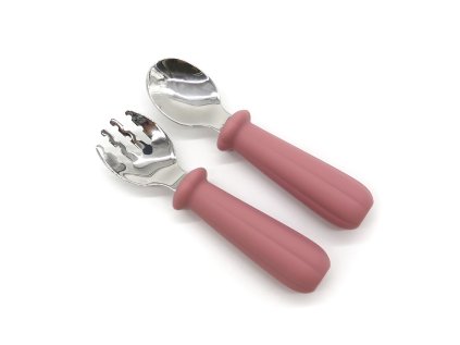 Martons Detský príbor - lyžička a vidlička 2ks,kovové, Rose pink