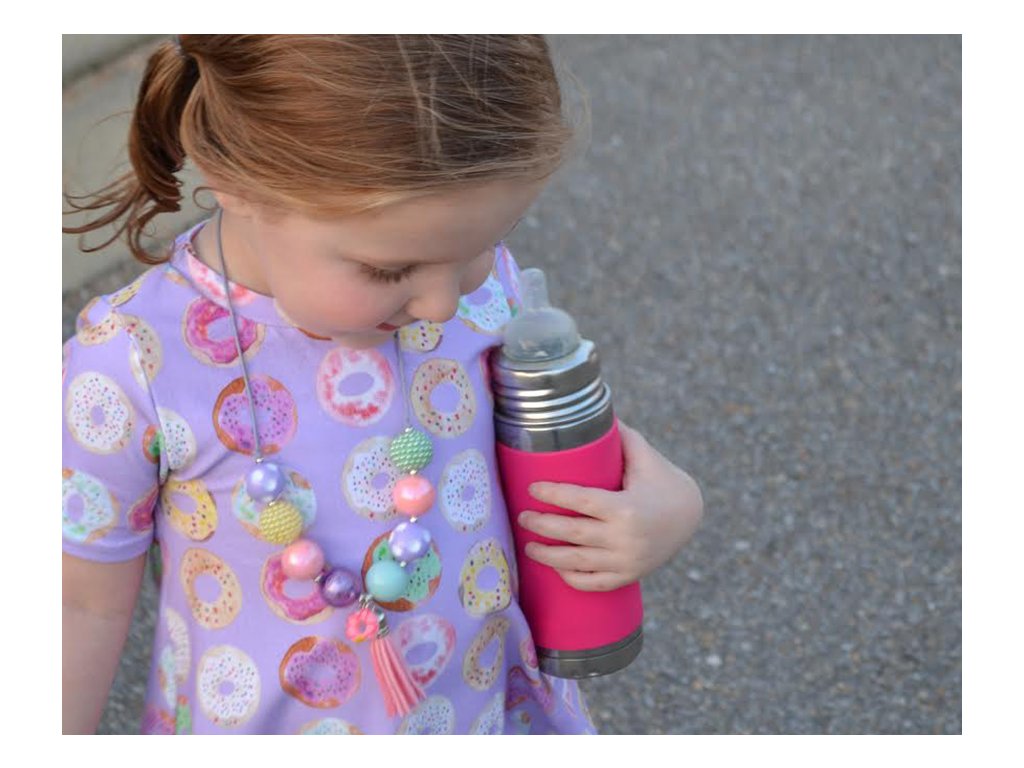- Súčasťou je silikónový vrchnák chrániaci cumlík a vymeniteľný farebný silikónový návlek na fľašu pre lepšie uchopenie a izoláciu.