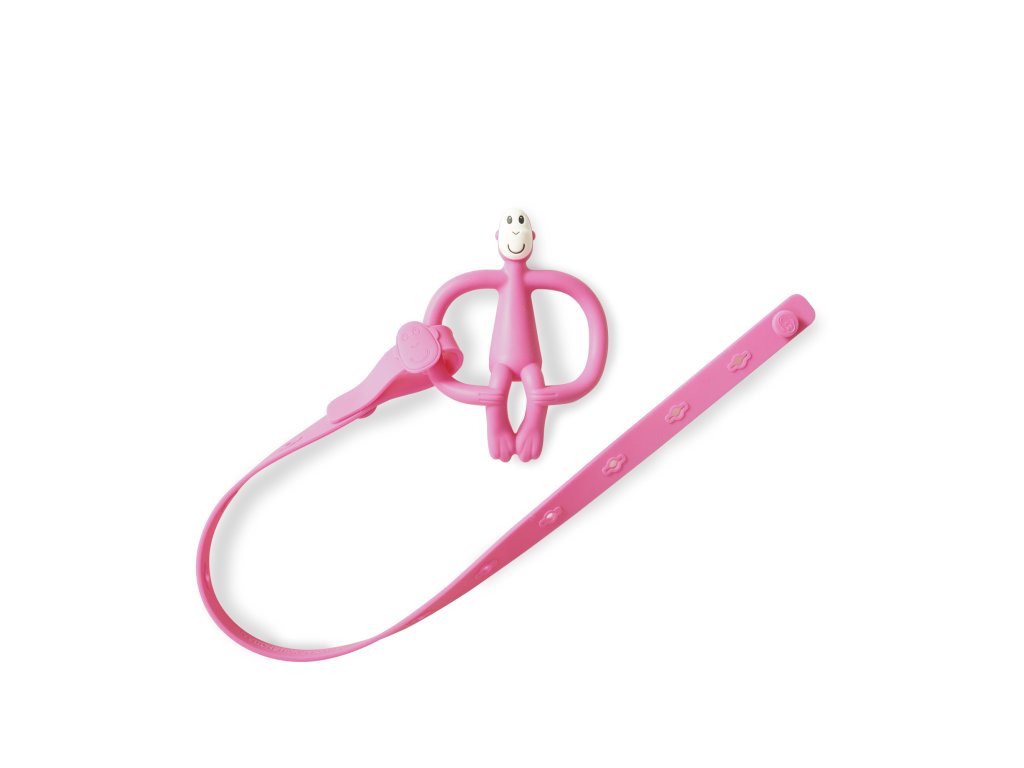 - jednoducho nastaviteľný silikónový remienok, vďaka ktorému sa hryzátko, cumlík či iná hračka už nikdy nestratí či nespadne na zem,