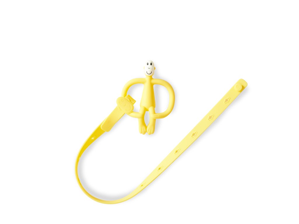 - jednoducho nastaviteľný silikónový remienok, vďaka ktorému sa hryzátko, cumlík či iná hračka už nikdy nestratí či nespadne na zem,
