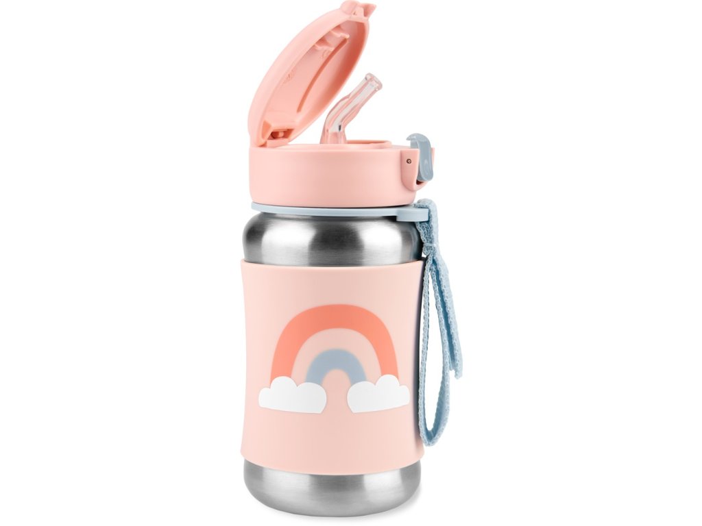 SKIP HOP Spark Style Fľaša so slamkou na vodu nerez Dúha 12m+