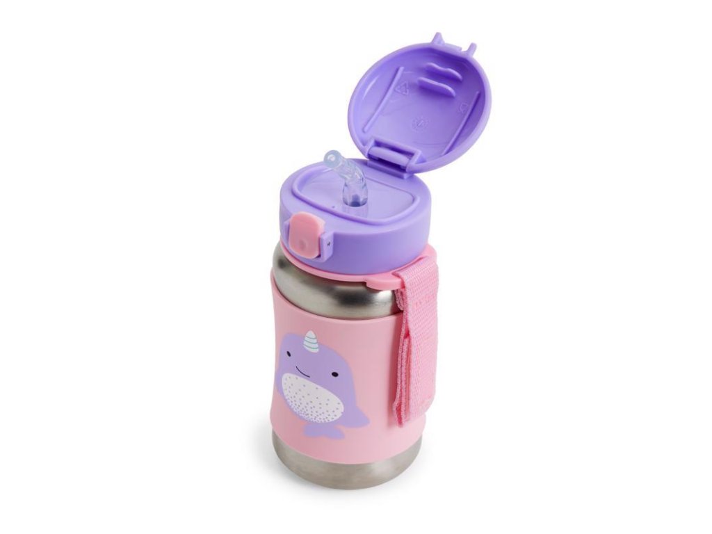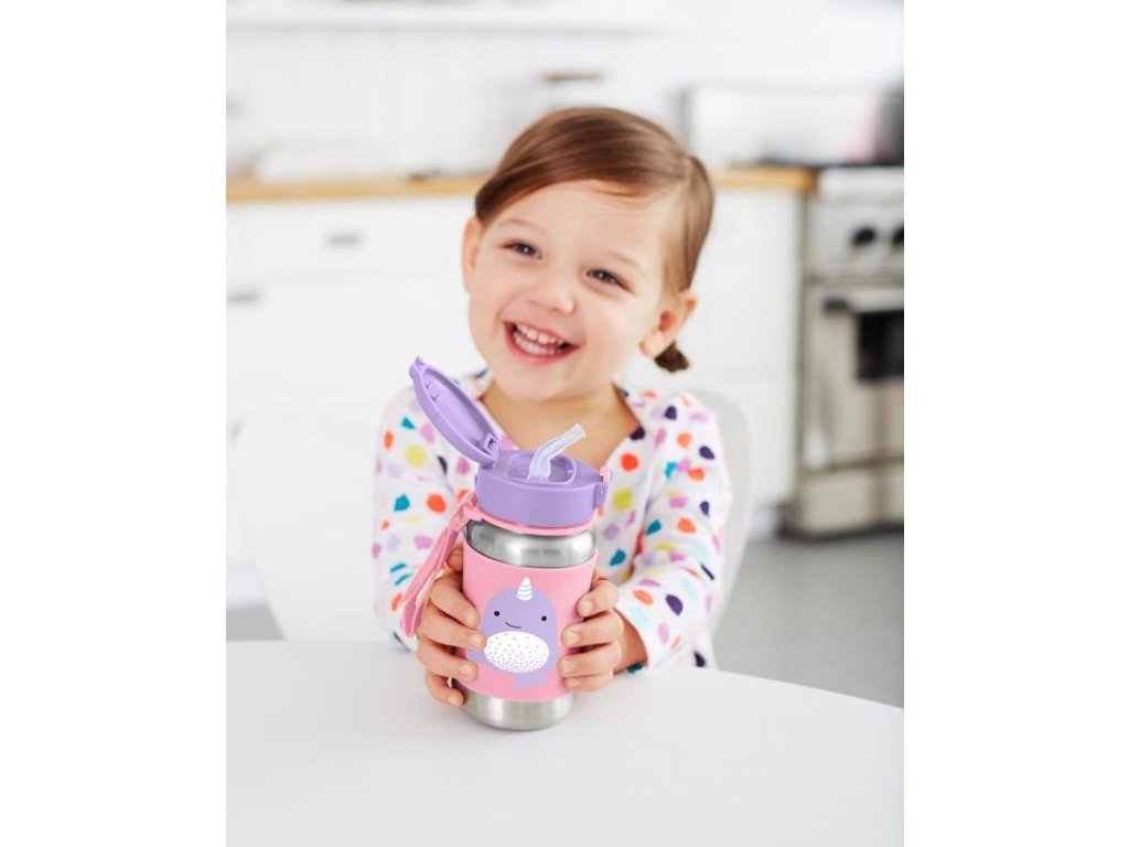 SKIP HOP Zoo Fľaša so slamkou na vodu nerez Narval 12m+